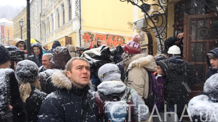 Сегодня утром, 29 ноября, в Киеве на Андреевском спуске прошел митинг киевлян против появления в исторической части города уродливого здания в виде Черного куба.
