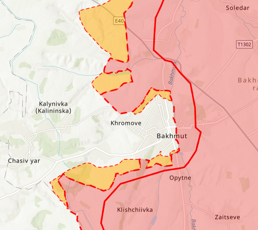 По ее данным, Бахмут находится в оперативном окружении, ситуация для группировки ВСУ в городе и дальше остаётся критической. Российские силы по-прежнему остаются вблизи поселка Хромово, через которое проходит дорога на Часов Яр.