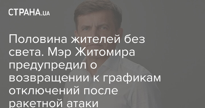 В результате ракетной атаки 50% жителей Житомира находятся без света, а область временно вернется к графикам отключения электроэнергии.