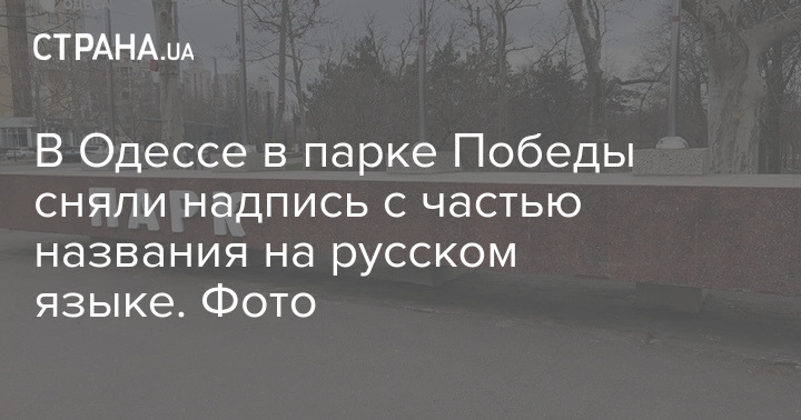 На входе в одесский парк Победы сняли надпись с названием на русском языке. Демонтировали слово "победы" и теперь там написано просто "парк".