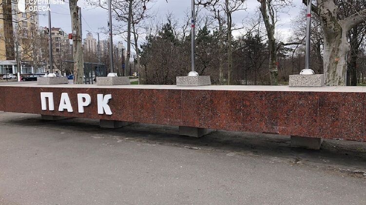 В одесском парке убрали надпись с названием на русском языке. Фото: "Суспильне"