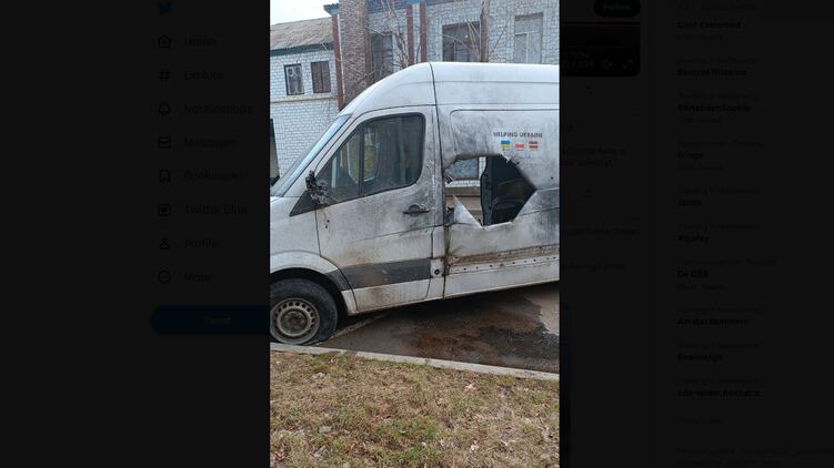 Снаряд попал в микроавтобус, в котором два польских волонтера везли гуманитарную помощь. Оба поляка получили ранения, один эвакуирован в Днепр в больницу Мечникова.