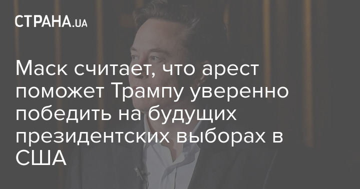 Американский бизнесмен Илон Маск считает, что задержание бывшего президента США Дональда Трампа поспособствует его победе на президентских выборах в 2024 году.