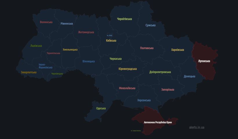 - Херсонская область – полоса прибрежных территориальных общин и отдельные зоны в пределах территориальных общин населенных пунктов Посад-Покровское, Правдино, Давыдов Брид, Малая Александровка, Высокополье, а также полоса населенных пунктов по обе стороны вдоль реки Ингулец;