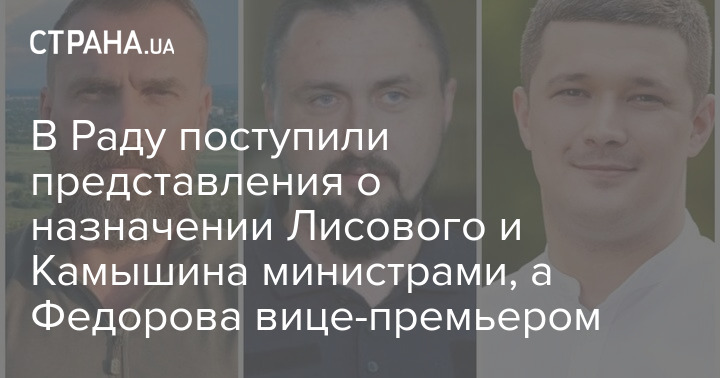 В Раду поступили представления о назначении Лисового и Камышина министрами, а Федорова вице-премьером