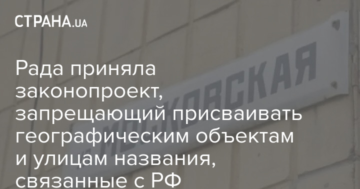 Рада приняла законопроект, запрещающий присваивать географическим объектам и улицам названия, связанные с РФ