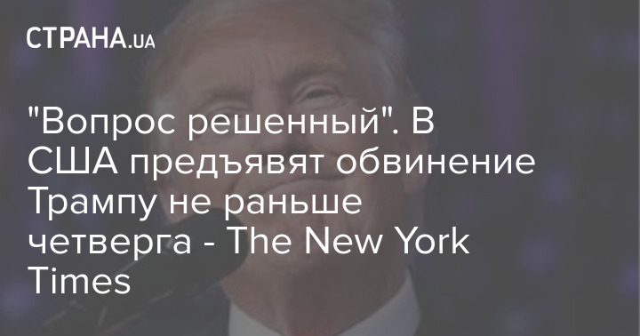 Со ссылкой на источники NYT сообщает, что обвинение Трампу будет выдвинуто не раньше четверга. При этом в публикации говорится, что сам вопрос является практически решенным, так как "прокуратура дала понять, что обвинение бывшему президенту, вероятно, будет предъявлено".