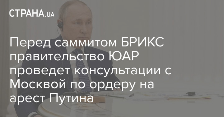 Правительство ЮАР проведет консультации с Москвой по поводу решения Международного уголовного суда (МУС) о выдаче ордера на арест президента России Владимира Путина.