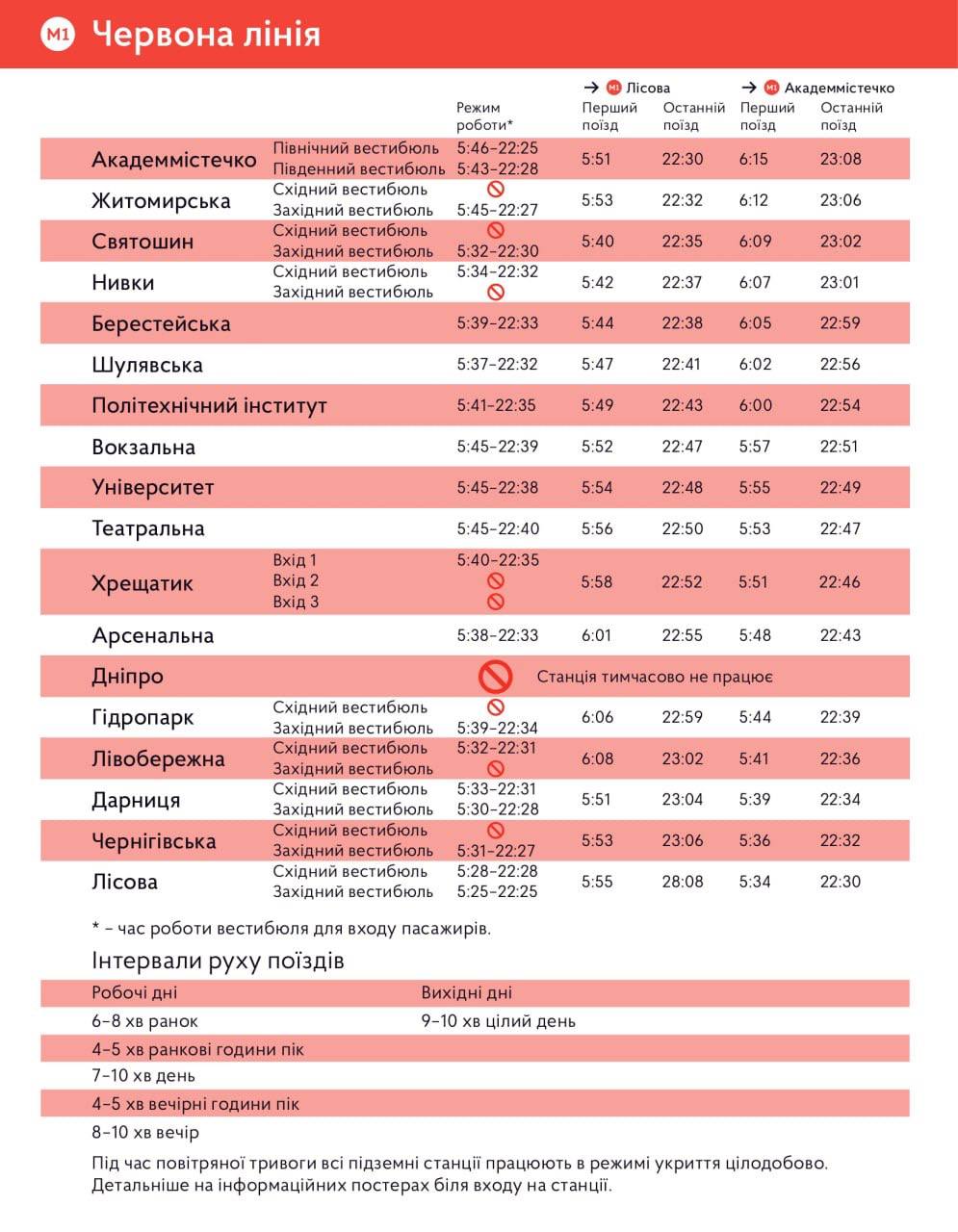 Опубликован новый график работы киевского метро после сокращения комендантского часа