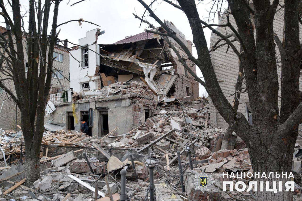 Разбор завалов продолжается. Напомним, в результате обстрела погибли двое человек.