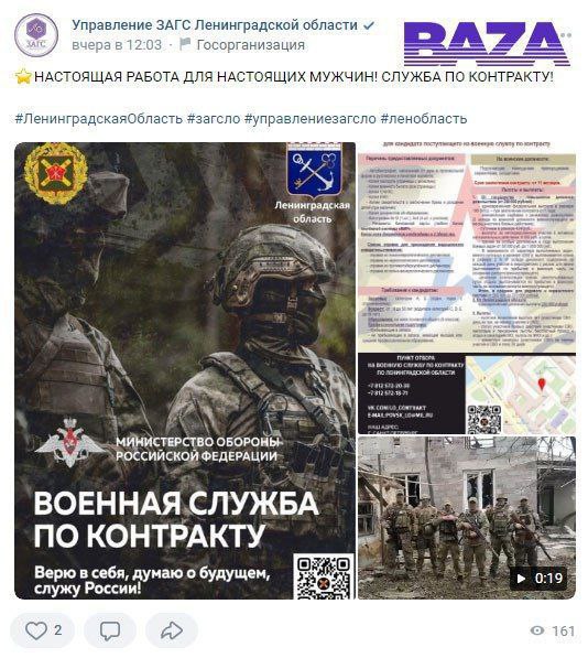 Повсеместная реклама контрактной службы. По данным российских СМИ, местным органам власти и бюджетным организациям спущено указание — повальное промотирование контракта с ВС РФ.