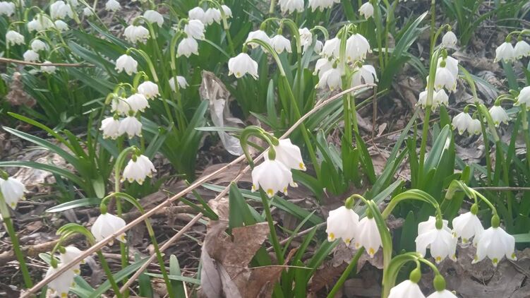 Очевидно, некогда эти цветы были высажены хозяйкой одного из жилищ Чернобыля. Благодаря своей мощной корневой системе белоцветник весенний разросся и едва потеплело украсил природу белыми колокольчиками и приятным фиалковым ароматом.