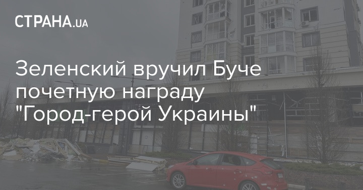 "Сегодня для меня честь быть здесь и большая честь вручить Буче - городу героев - почетное отличие, символизирующее силу этого города, символизирующее такой сложный путь, пройденный украинцами", - сказал Зеленский.