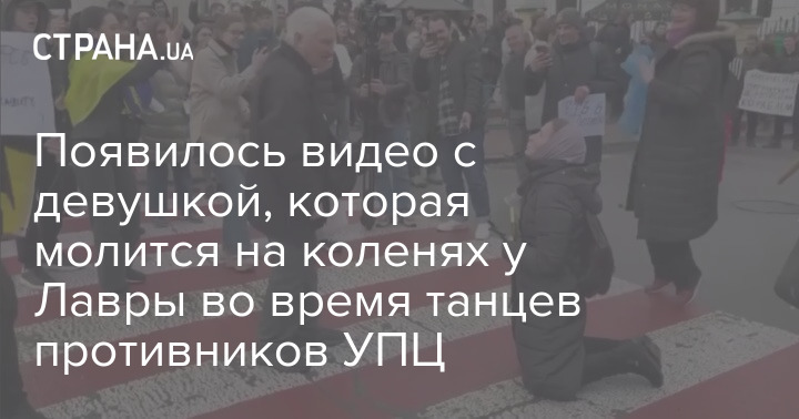 В субботу, 1 апреля, в Сети разошлось видео с девушкой, которая на коленях стояла и молилась около Киево-Печерской лавры, в то время как вокруг танцевали противники УПЦ.