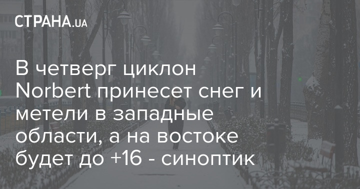 В Украине, в четверг, 6 апреля, снова пойдет снег. В частности, в западных областях циклон по имени Norbert принесет снег, мокрый снег, сильный северо-западный ветер. Там ожидается метель.