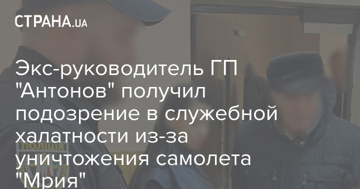 Бывшему генеральному директору Государственного предприятия "Антонов" сообщили о подозрении в служебной халатности. По информации Офиса генпрокурора, из-за его действия транспортный самолет АН-225 "Мрия" своевременно не был транспортирован с аэродрома в Гостомеле.
