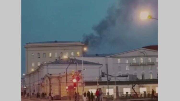 В здании минобороны РФ произошел пожар. Скриншот видео