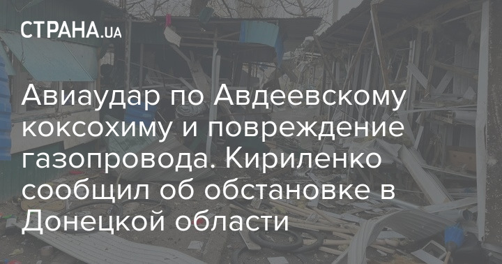 Авиаудар по Авдеевскому коксохиму и повреждение газопровода. Кириленко сообщил об обстановке в Донецкой области