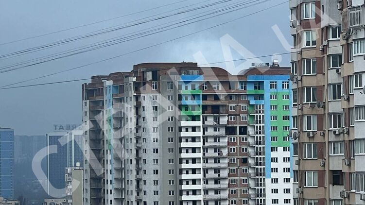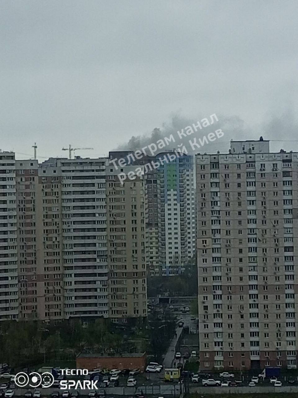 В Киеве на Позняках горит недострой на улице Здолбуновской. Судя по фото, горят верхние этажи 25-этажного здания.