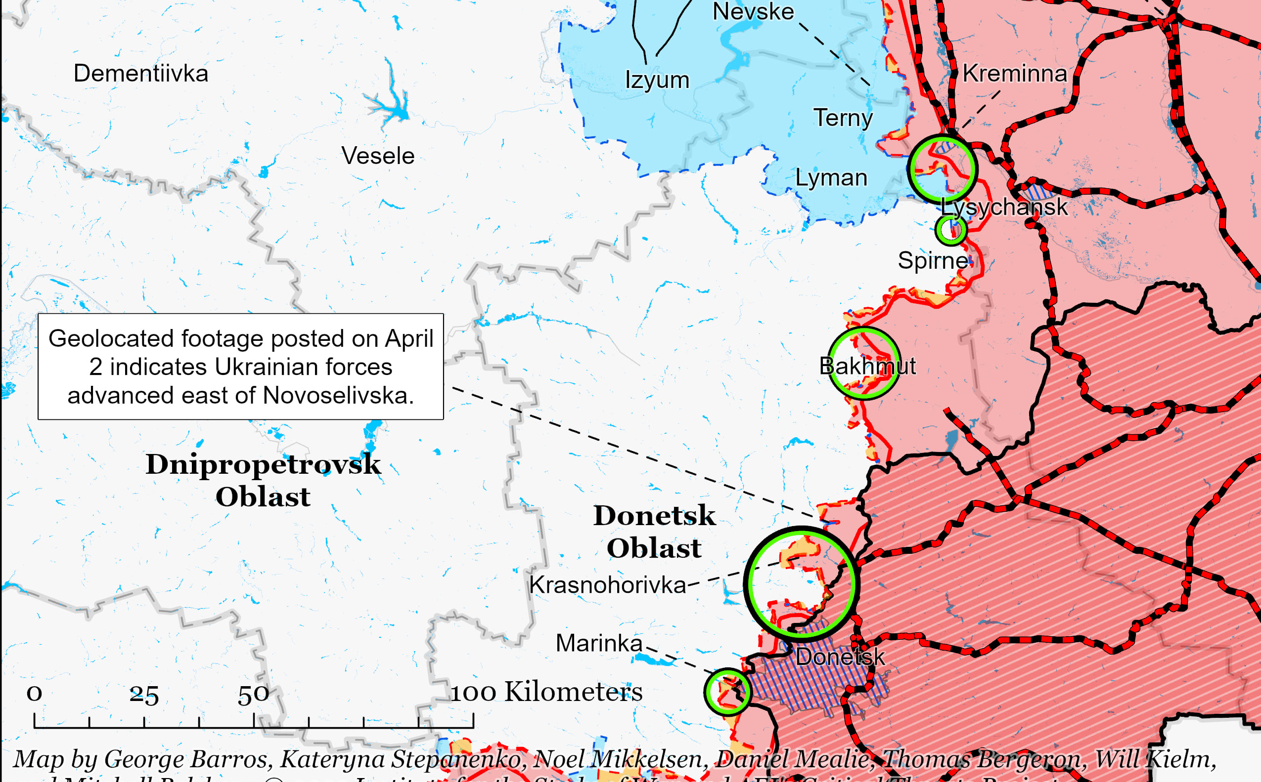 В случае захвата Бахмута Донецкой области россияне пойдут не на запад, к Часову Яру, а на север, чтобы срезать выступ в районе Северска.