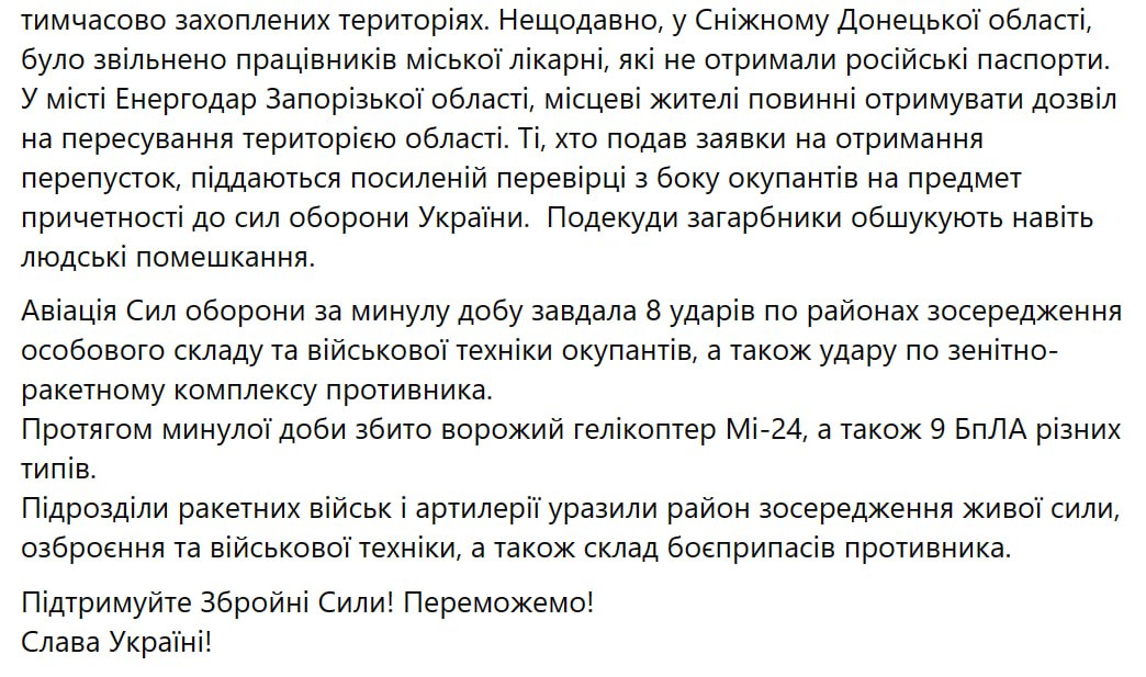 За прошедшие сутки противник нанес 39 авиационных и 7 ракетных ударов, 4 из которых - из ЗРК С-300 по Краматорску.