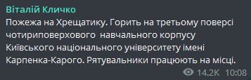 О пожаре сообщил мэр столицы Виталий Кличко в 10 утра. А уже через полчаса ГСЧС заявила о его ликвидации.
