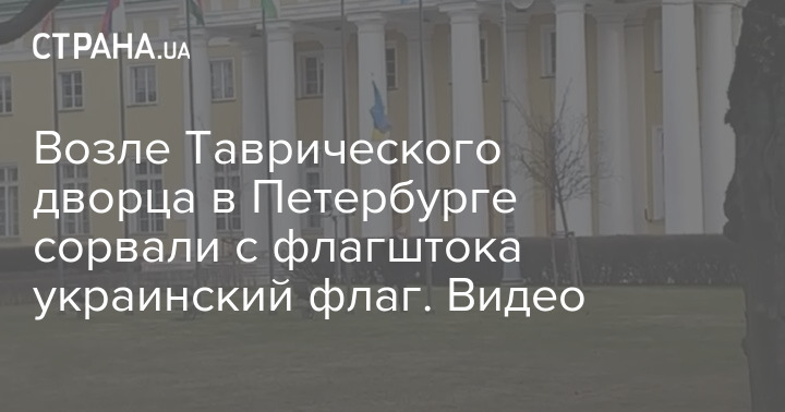Украинский флаг был сорван с флагштока возле Таврического дворца в центре Санкт-Петербурга.