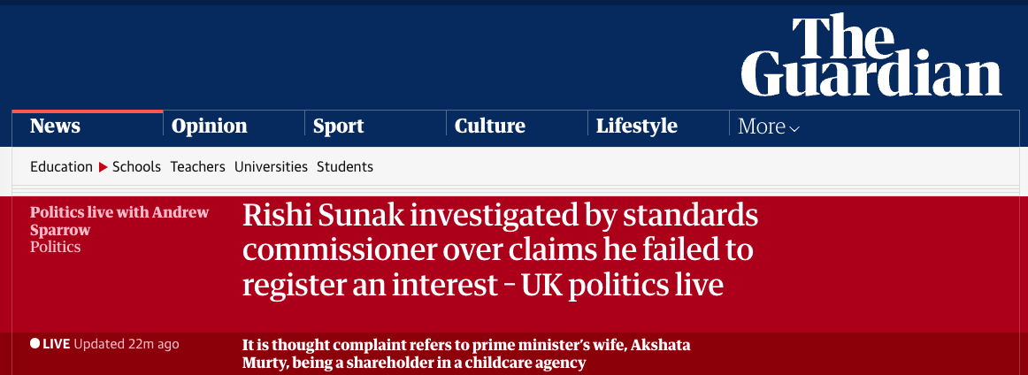 Сунак не упомянул о бизнесе жены в обновленной декларации.