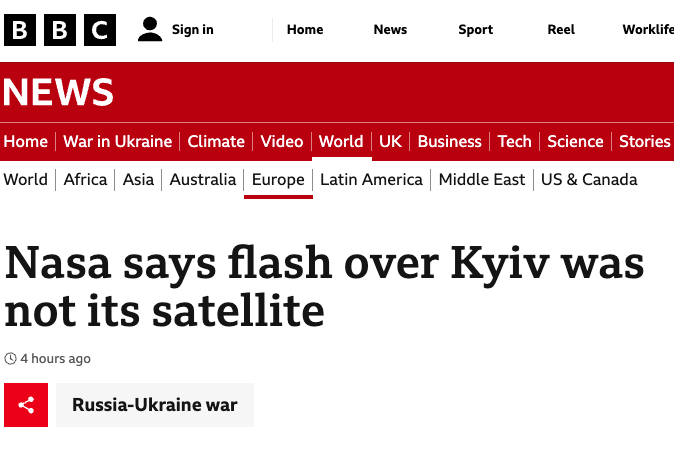 В NASA сообщили, что причиной яркой вспышки под Киевом точно был не их спутник
