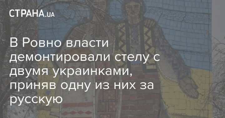 В Ровно демонтировали советскую стелу с мозаикой, изображавшей две женские фигуры в национальной одежде.