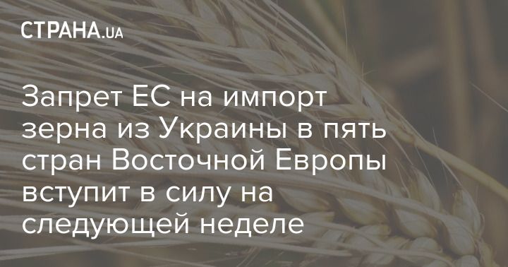 Запрет ЕС на импорт из Украины пшеницы, кукурузы, рапса и семян подсолнечника в пять стран Восточной Европы (Польша, Венгрия, Словакия, Румыния и Болгария) вступит в силу 2 мая.