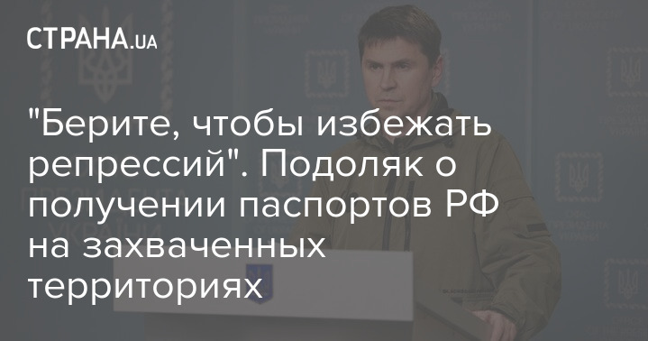 Советник главы Офиса президента Украины Михаил Подоляк прокомментировал получение украинцами гражданства РФ на неподконтрольных территориях.