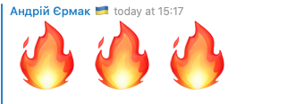 К слову, глава Офиса президента Андрей Ермак некоторое время назад разместил у себя в телеграмм-канале огоньки пожара (как бы подтверждая "украинский след" в атаке). Но потом почти моментально их убрал.