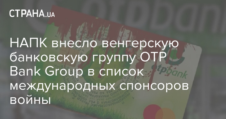 НАПК сообщило о внесении венгерской банковской группы OTP Bank Group в перечень международных спонсоров войны. Причина - льготные условия кредитования для российских военных.