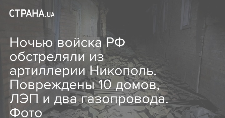 Ночью войска РФ обстреляли из артиллерии Никополь. Повреждены 10 домов, ЛЭП и два газопровода. Фото