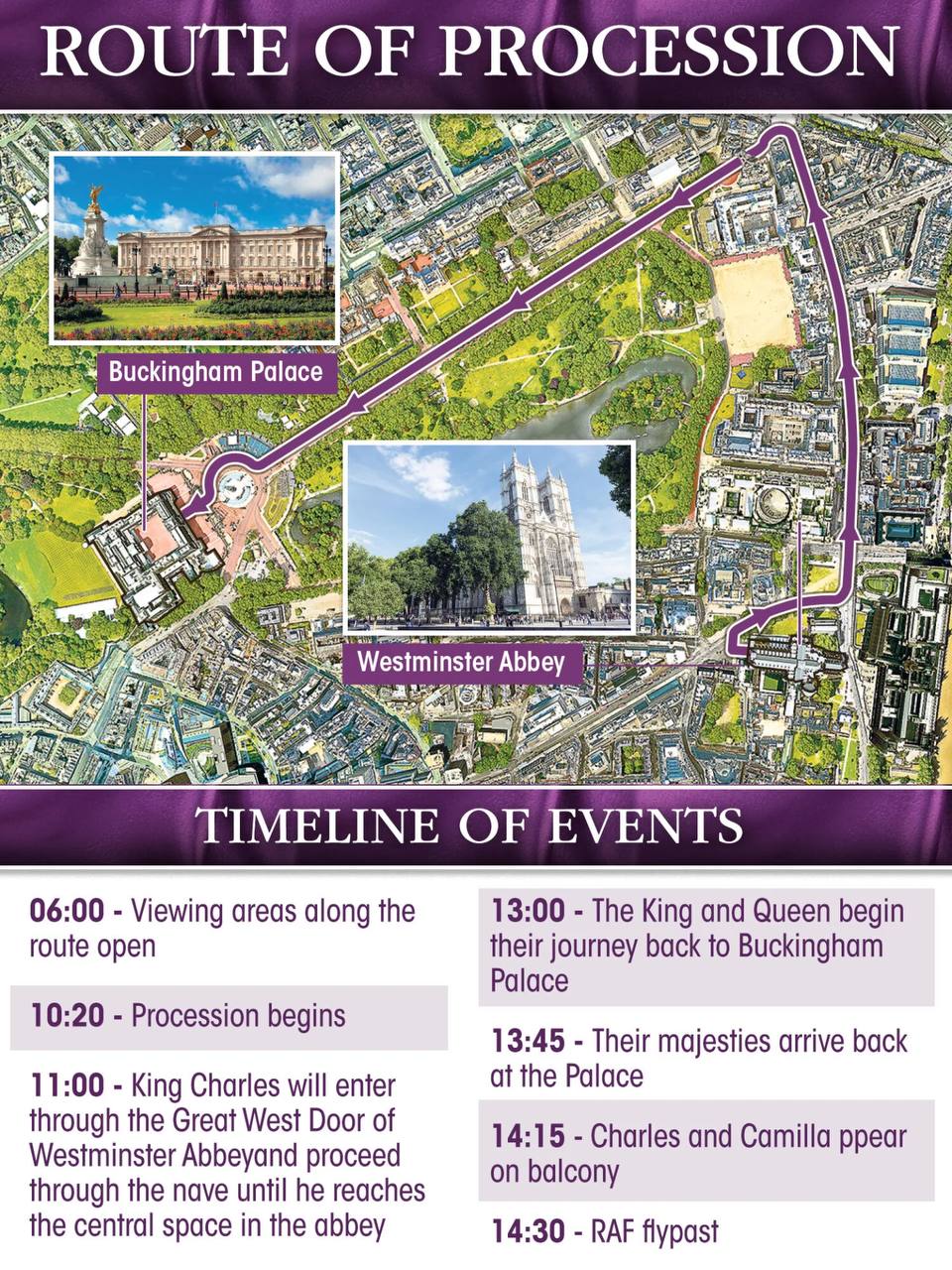 Дорогу к аббатству Карл III с супругой проделают в карете "Бриллиантовый юбилей" - экипаже, сделанном в Австралии к 60-летию правления Елизаветы II. Карета изготовлена из алюминия, оснащена кондиционером и стеклоподъемниками. По окончании коронации они вернутся в Букингемский дворец в золотой карете, которая используется на каждой коронации со времен Вильгельма IV в 1831 году.