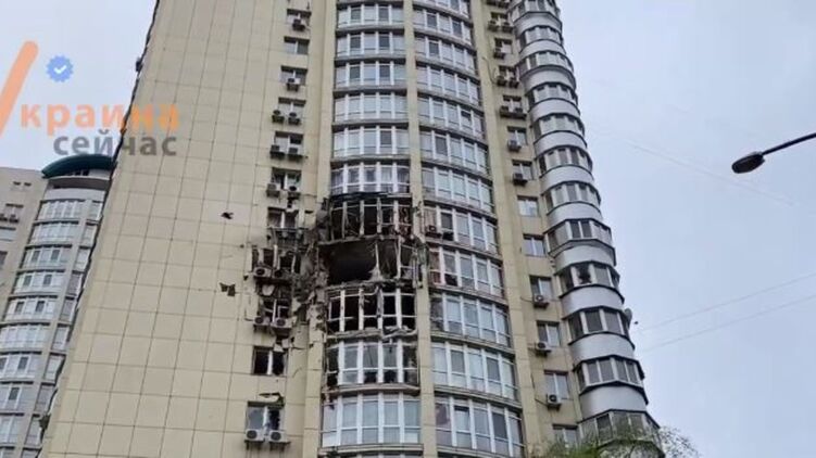 Появилось видео поврежденного дома в Киеве в результате атаки беспилотников