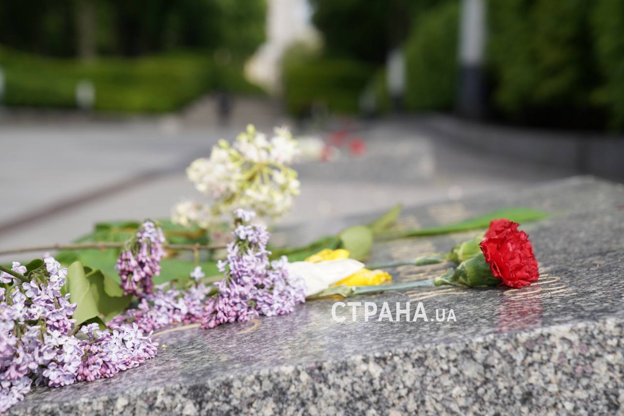 В Киеве сегодня, 9 мая, люди с утра несут цветы в Парк Славы к Вечному огню. Официальные мероприятия отменены в связи с военным положением, однако люди приходят в частном порядке, чтобы возложить цветы и почтить память погибших.