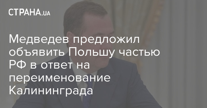 Зампред Совбеза РФ Дмитрий Медведев в ответ на переименование Польшей Калининграда в Крулевец предложил называть Гданськ Данцигом, Вроцлав - Бреслау, а Польшу - Царством Польским в составе Российской Федерации.