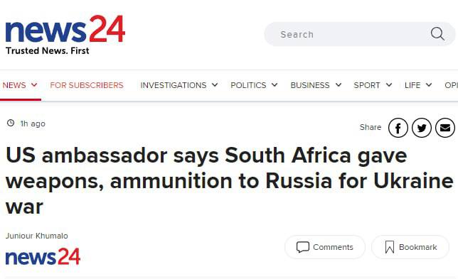 "Среди того, что мы отметили, была стоянка грузового корабля на военно-морской базе Саймонстаун в период с 6 по 8 декабря 2022 года, на который, как мы уверены, грузили оружие и боеприпасы для отправки в Россию", - заявил посол.