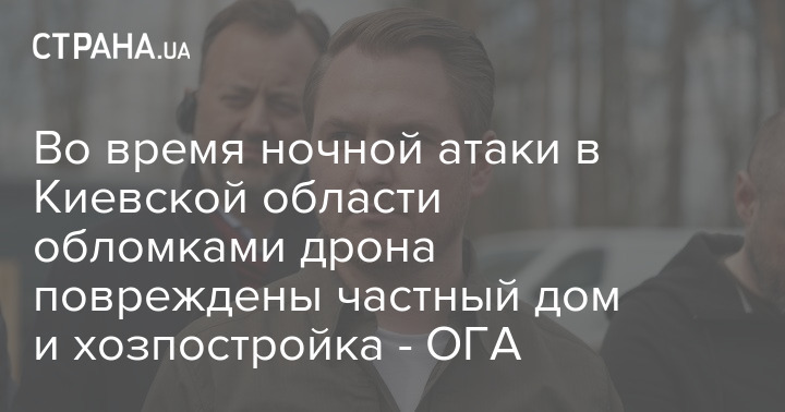 В Киевской области в результате падения обломков дрона в ночь с 12 на 13 мая поврежден частный дом и хозяйственная постройка. Повреждения незначительные – забор, фасад, окна здания.