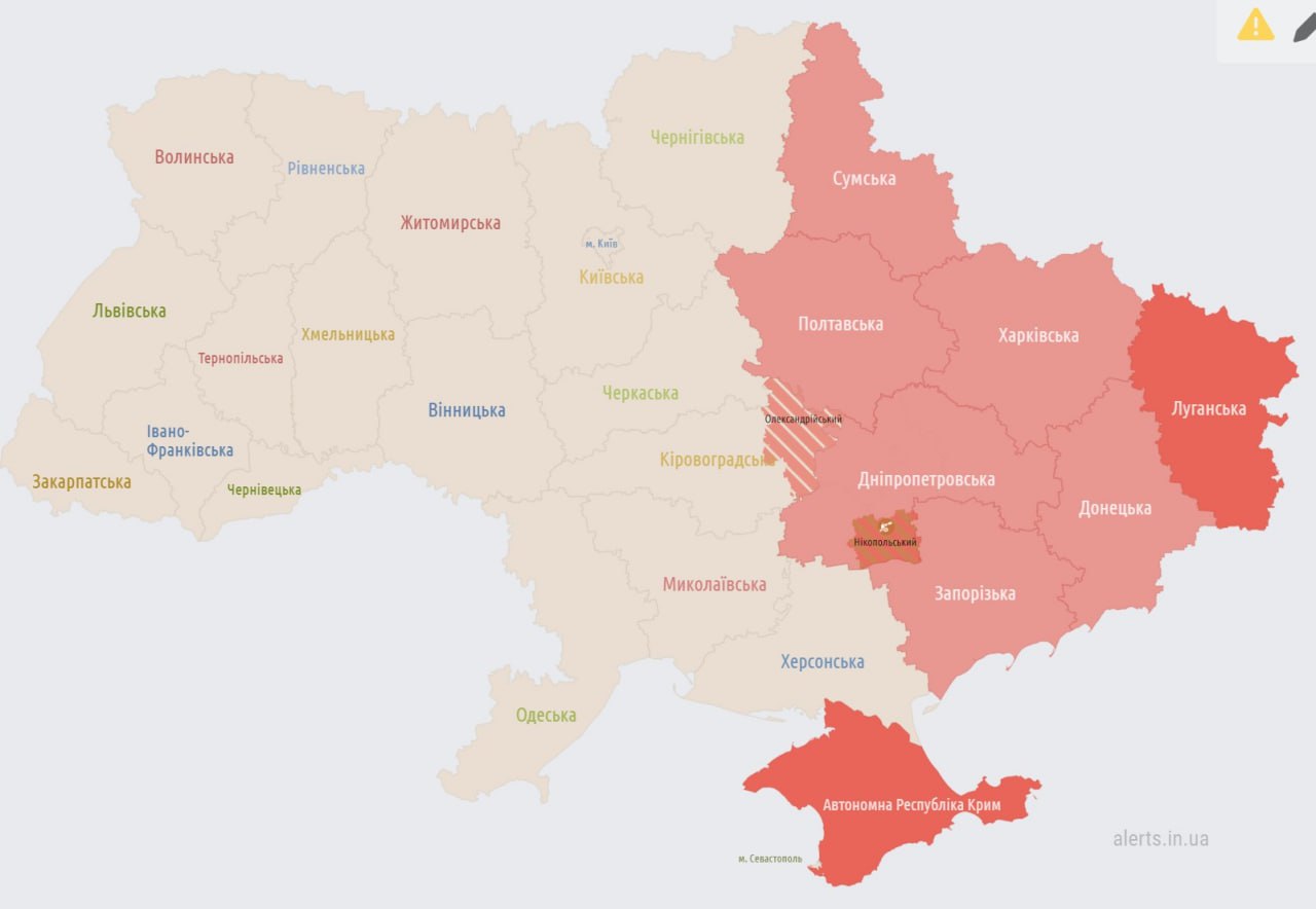 21.57 Воздушная тревога на восточной части Украины.