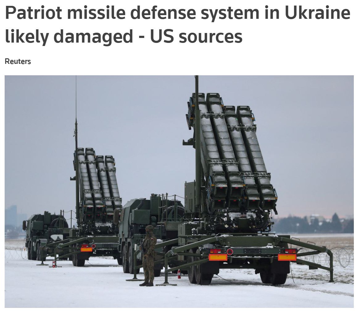 21:29 Комплекс ПВО Patriot в Украине поврежден, но находится в рабочем состоянии.