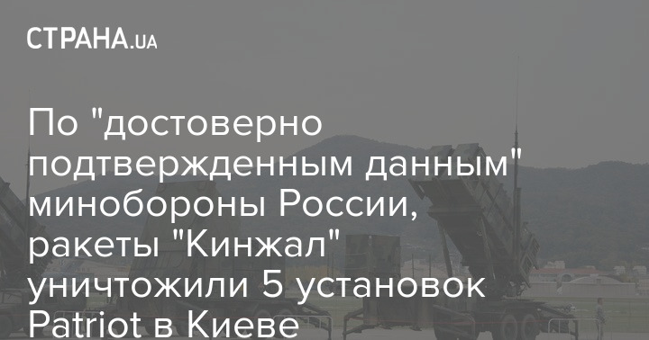 "По достоверно подтвержденным данным, 16 мая в результате удара гиперзвуковым ракетным комплексом "Кинжал" в городе Киев были поражены и полностью уничтожены многофункциональная радиолокационная станция, а также 5 пусковых установок зенитного ракетного комплекса Patriot производства США", - говорится в сообщении.