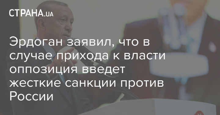 Президент Турции Реджеп Тайип Эрдоган заявил, что турецкая оппозиция в случае прихода к власти собирается ввести жесткие санкции против России.