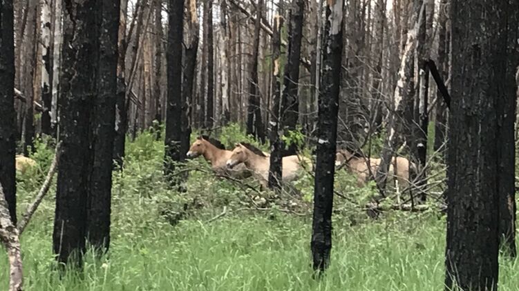 Дикие лошади Пржевальского устойчиво ассоциируются со степями или полупустынями. Но, как оказывается, эти копытные удачно приспосабливаются к разным условиям. Они прекрасно чувствуют себя на территории Чернобыльского заповедника: и не только на лугах и бывших полях, полузаросших кустарниками, но и в больших лесных массивах с буреломами и постпирогенными зарослями.