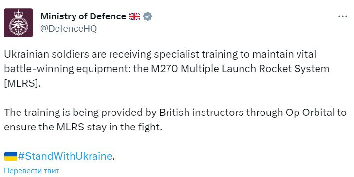 "Обучение проводится британскими инструкторами через Op Orbital, чтобы гарантировать, что РСЗО останется в бою", – говорится в сообщении.