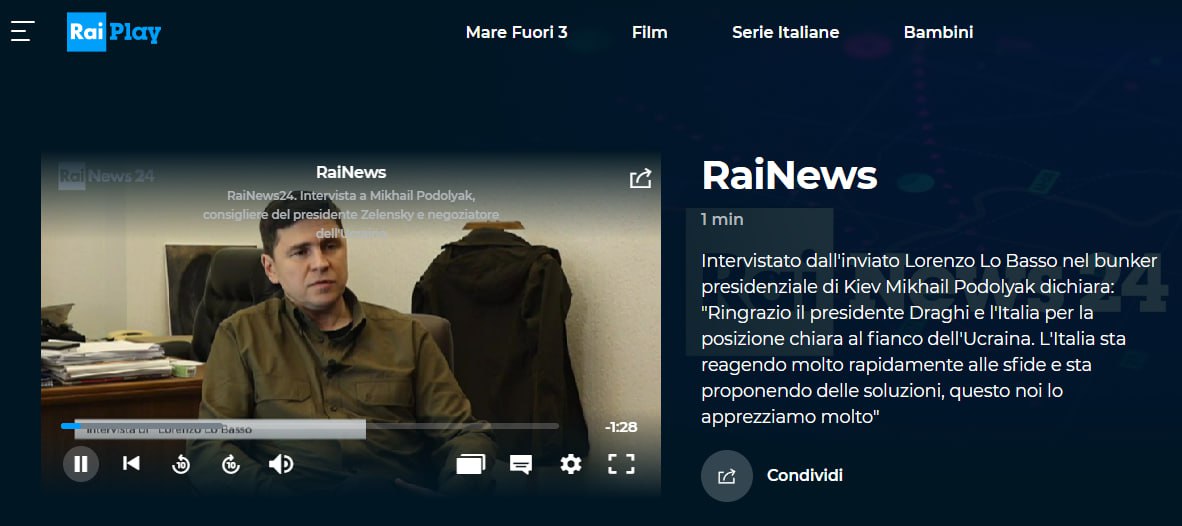 Об этом он заявил в эфире итальянского телеканала Rai 1.