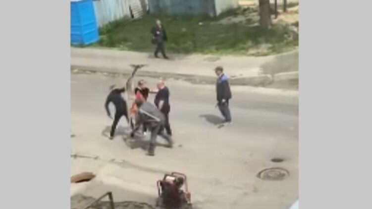 На видео можно заметить, что один из ремонтников использовал деревянную изгородь в качестве щита, чтобы не подпустить к себе неадеквата с ножом. После чего этой же изгородью коммунальщик ударил нападающего. Тогда мужчина поднял с земли кирпич и швырнул его в ремонтника. В конце концов, трое ремонтников, один из которых тоже вооружился палкой, смогли повалить хулигана на землю.