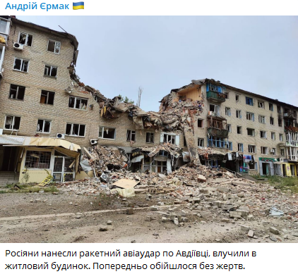 Последствия обстрела Авдеевки. Фото: t.me/ermaka2022